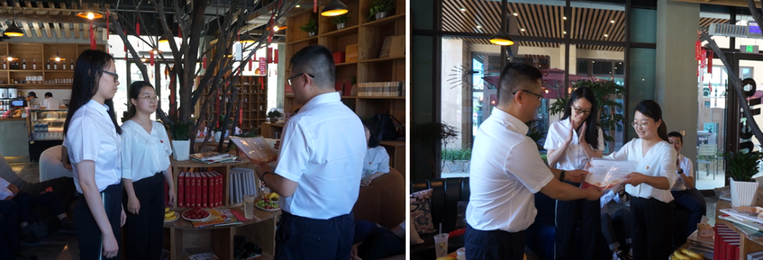 活动举办当天,恰逢党员袁田同志和仲亚男同志的“政治生日”,为了让党员同志们切实感受到来自党组织的温暖与关怀,引导广大党员进一步强化身份意识、宗旨意识和责任意识,交流会现场还为两位党员同志举办了一场特别的“政治生日会”,为她们送上一张特制的“生日贺卡”、一枚新党徽、一本新党章,以极富仪式感的活动形式,提醒激励党员同志们要时刻谨记党员职责,不忘初心、牢记使命,在工作和生活中时刻以党员标准严格要求自己,切实发挥党员干部的先锋模范作用。
