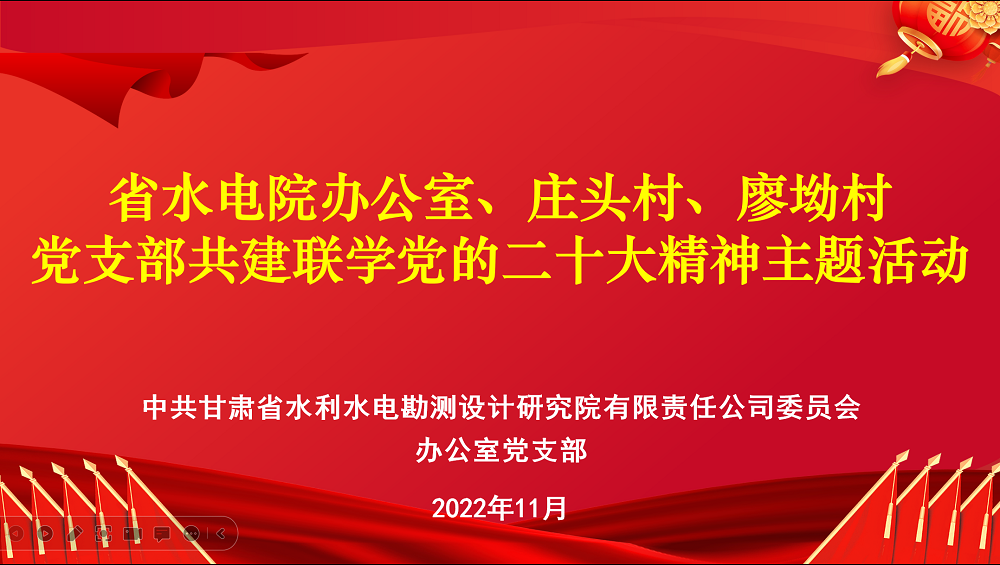 <p style="text-align: left; text-indent: 2em;"><span style="font-size: 18px;">为持续促进党的二十大精神学习贯彻走深走实，使党的二十大精神进村入户、深入人心，11月22日，甘肃省水利水电勘测设计研究院有限责任公司办公室党支部与帮扶村西峰区庄头村党支部、廖坳村党支部开展共建联学党的二十大精神主题活动。</span></p><p style="text-align: center"><img src="../../hdupf/img/202211/20221123175351_438928.png"/></p><p style="text-align: left; text-indent: 2em;"><span style="font-size: 18px;">会议以视频形式召开，两个帮扶村在线下设分会场，村党支部成员在分会场参加。会上，水电设计院办公室党支部书记陈红宝对党的二十大精神进行了辅导宣讲，办公室党支部、帮扶工作联系人、驻村干部和两个村党支部书记、村民党员代表等9人作了交流发言。</span></p><p style="text-align: center"><img src="../../hdupf/img/202211/20221123175351_852233.png"/></p><p style="text-align: left; text-indent: 2em;"><span style="font-size: 18px;">会议强调，当前，帮扶工作正处于持续发力期，办公室党支部和两个帮扶村党支部要通过结对共建方式，共同努力，认真抓好党的二十大精神的学习宣传贯彻工作，进一步增强新时代乡村振兴工作的使命感责任感，真抓实干、埋头苦干，携手并进，奋力开创全面推进乡村振兴新局面。</span></p><p style="text-align: center"><img src="../../hdupf/img/202211/20221123175351_406546.png"/></p><p style="text-align: left; text-indent: 2em;"><span style="font-size: 18px;">会议要求，学习宣传贯彻党的二十大精神是当前的首要政治任务。结对党支部和驻村工作队要高度重视，充分利用村级党建阵地，通过“三会一课”、主题党日、进社入户、座谈交流、悬挂标语等多种方式，切实学习好、宣传好、落实好党的二十大精神，自觉把思想和行动统一到党的二十大精神上来。要持续加强党组织建设，不断增强党组织的凝聚力和领导力，提高基层党组织对工作的牵头抓总能力和协调推动能力。要突出抓好产业培育，持续做好教育帮扶、消费帮扶、慰问帮扶等工作，立足村域经济实际，制定规划目标，培育发展产业，不断增强内生动力，拓宽增收渠道，为乡村振兴汇聚起磅礴力量，将党的二十大精神学习成果转化为推动乡村振兴帮扶工作不断前进的实际成效。</span></p><p></p><p style="text-align: right; text-indent: 0em;"><span style="font-size: 18px; color: rgb(165, 165, 165);">（责任编辑：田树芬）</span></p>                        </div>