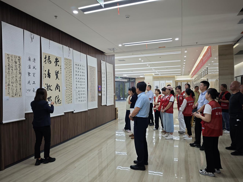 6月27日,兰州市城关区东岗街道深沟桥社区组织社区干部参观集团公司廉洁文化作品展,开展主题党日活动。
