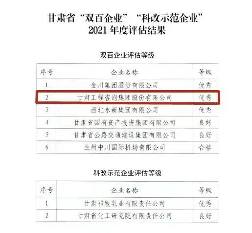 伟德国际victor·1946源自集团获甘肃省2021年度“双百企业”评估“优秀”等级
