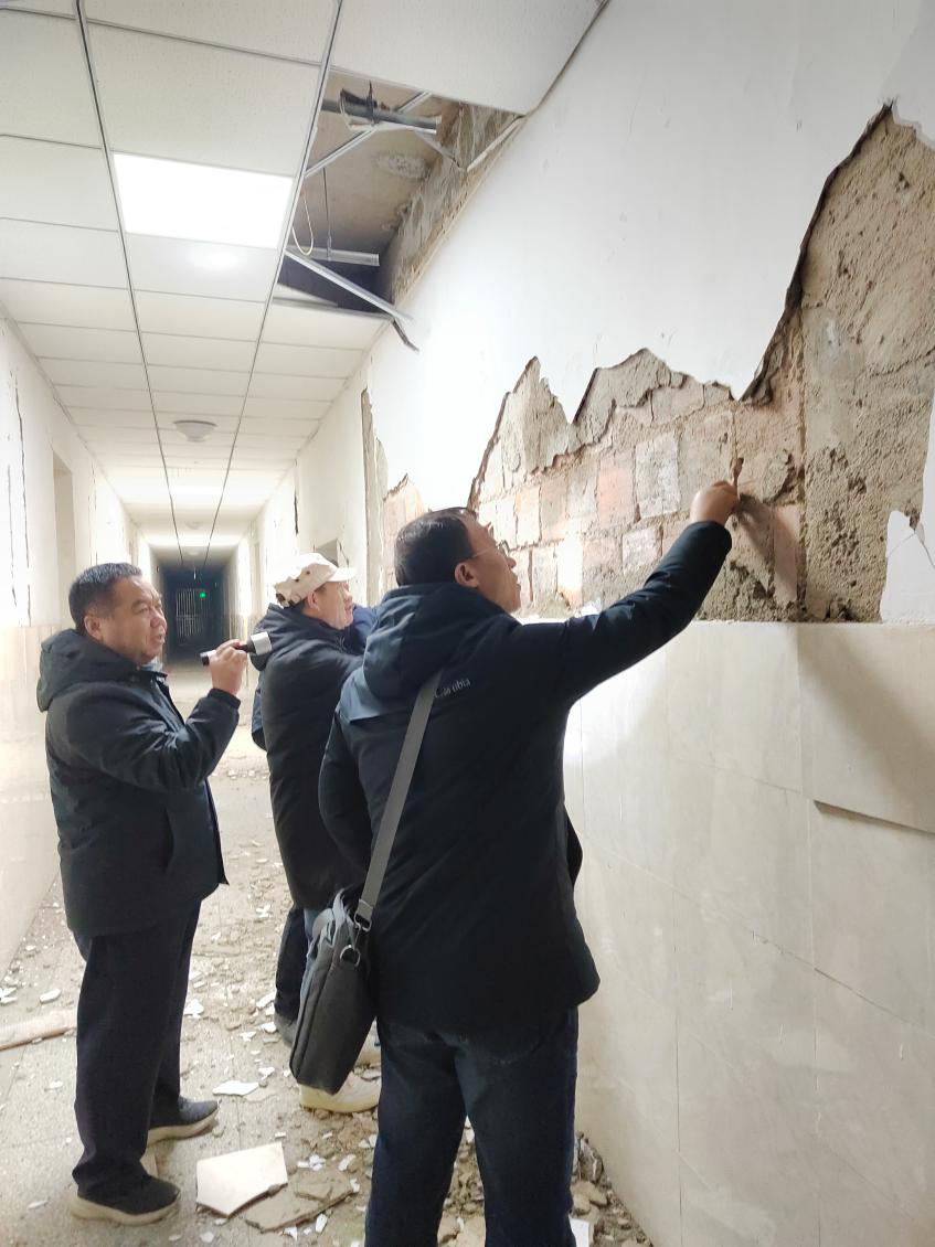 积石山县海拔高、天气冷、西风烈。集团公司派出的技术专家发挥各自专业技术特长,到达灾区即开展受灾房屋安全排查工作。95个专家小组重点对灾区学校、医院、污水处理厂、供热站、福利院、宾馆以及水利工程、居民住宅进行详细排查,认真出具评估结果,确保让群众住到安全的房屋里。