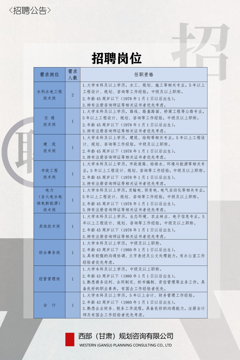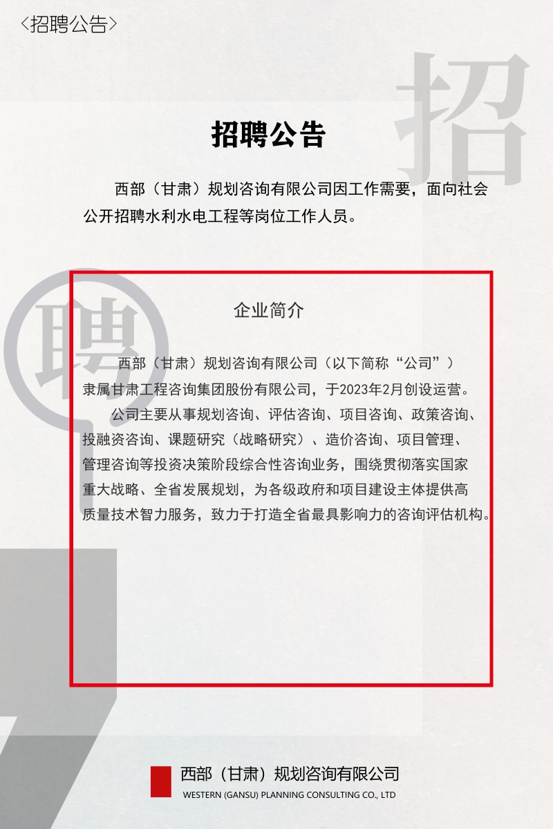 西部(甘肃)规划咨询有限公司2023年招聘公告