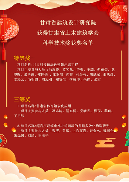 建筑设计院多个项目获甘肃省土木建筑学会科学技术奖