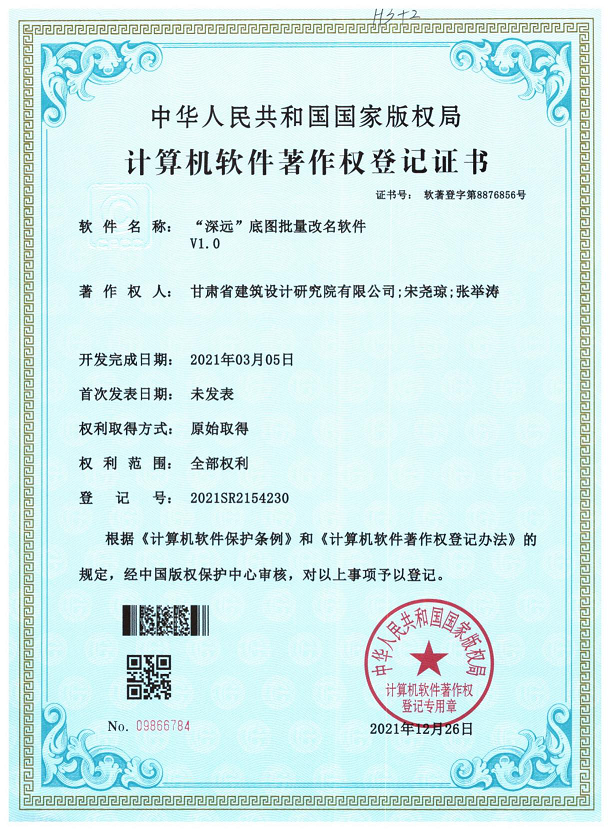 解决好这个问题,事关底图档案数字化工作质量和进度。建筑设计院研发人员以《甘肃省建筑设计研究院有限公司科技项目管理细则》为指导,强化自主创新,在总工程师张举涛的带领下,由技术质量部牵头负责,宋尧琼等研发人员参与,多次进行扫描现场调研,经过近一年的开发测试,自主研发出了适用于设计院模式的“‘深远’底图后处理系统”和“‘深远’底图批量改名软件”,并将研发成果申报国家版权局。