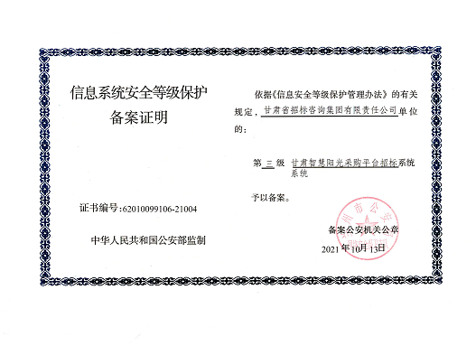 title: '甘肃智慧阳光采购平台系统通过国家三级等保认证',