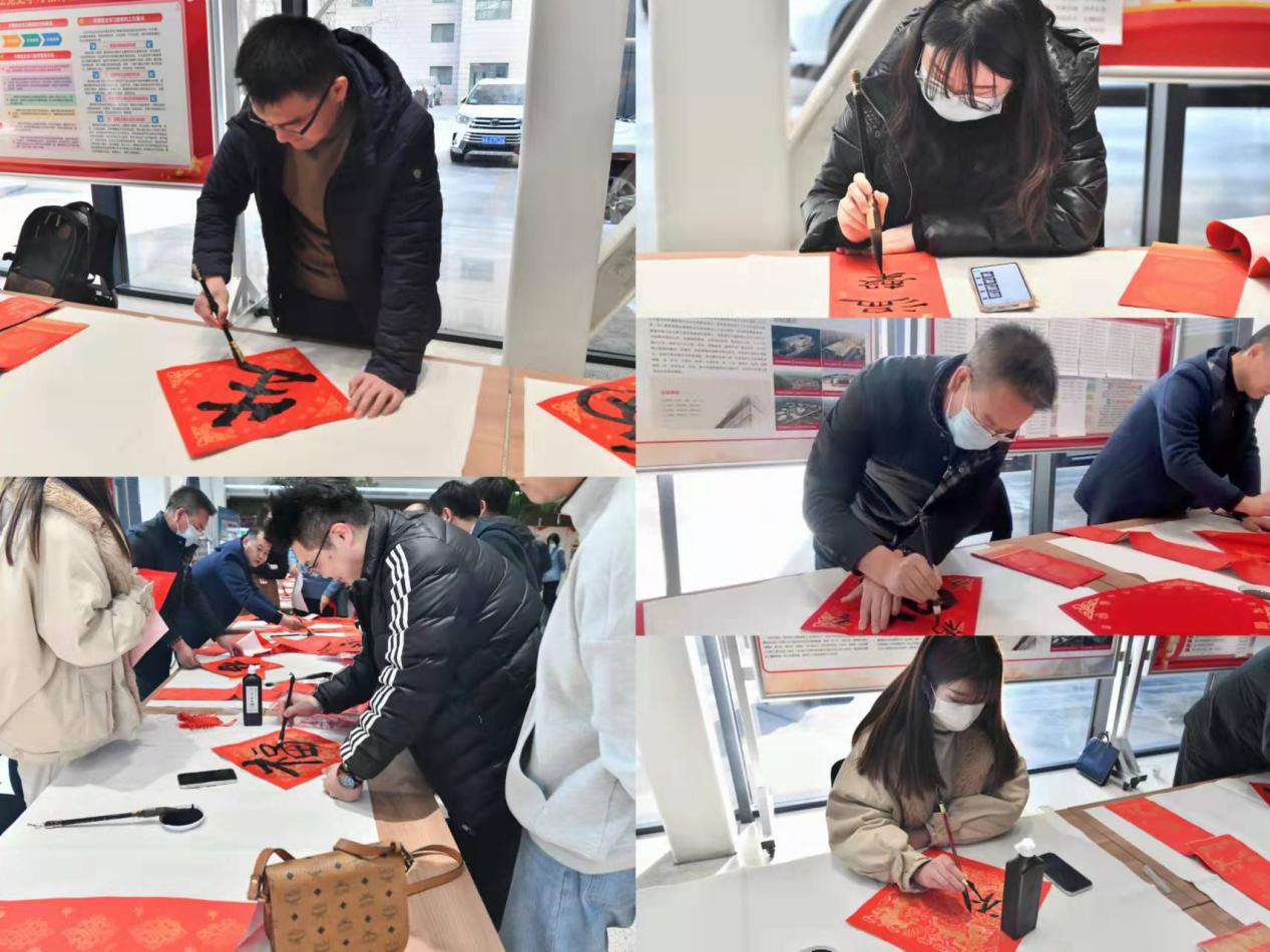 活动中,书法爱好者泼墨挥毫,倾注新春祝福于笔墨间,草书、行书、楷书、书写吉祥,福字、财字、乐字皆是祝愿。广大职工争相挑对联、晾对联、收对联,忙得不亦乐乎,个个喜笑颜开,呈现出一副热闹喜庆的景象。