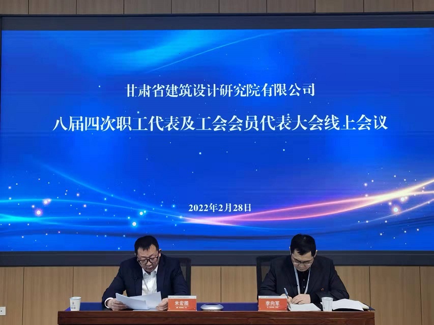 2月28日,甘肃省建筑设计研究院有限公司以视频会议形式召开八届四次职工代表大会。董事长米宏图作了题为《深化改革创新 聚力提质增效 以崭新业绩谱写高质量发展新篇章》的工作报告。建筑设计院领导班子成员及职工代表、工会会员代表147人分别通过PC端和移动端参加会议,17名特邀代表列席会议。会议由党委书记李向军主持。