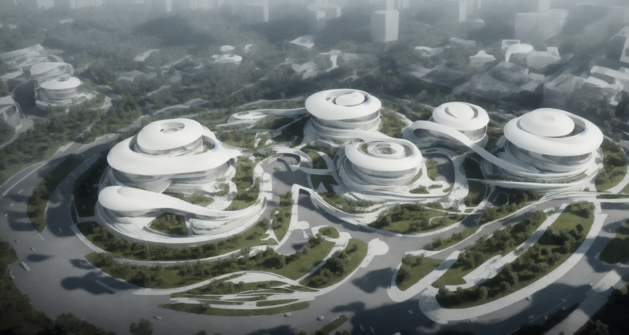 自AI绘画逐渐走入大众视野,人工智能作为一种可以模拟人类智能的技术,被广泛应用于建筑领域,成为建筑设计师的重要辅助工具。省建筑设计院设计创作团队积极响应数字化建设,在多个项目上进行人工智能技术、参数化技术的创作实践,完成了建筑方案设计创新。该设计创作团队把AI建筑方案设计全过程植入“临夏市西部文化组团局部地块方案设计项目——博物馆建筑设计”,从理念和形体出发,对原设计进行深化,完善方案初期设计构思。在空间方面,建筑形体通过中间体块的串联,将五个围合性的内向空间结合景观依次展开,并将中间主馆部分抬高处理,强化了主馆在整个博物馆群中体量上、视觉上的分量。在景观方面,建筑与环境融合更加浑然一体,达到和谐共生。此外,研究团队还对景泰县游客集散中心、景泰中心、临夏市花儿博物馆等项目进行了AI设计比对探索,使AI在设计初期的优势进一步显现。