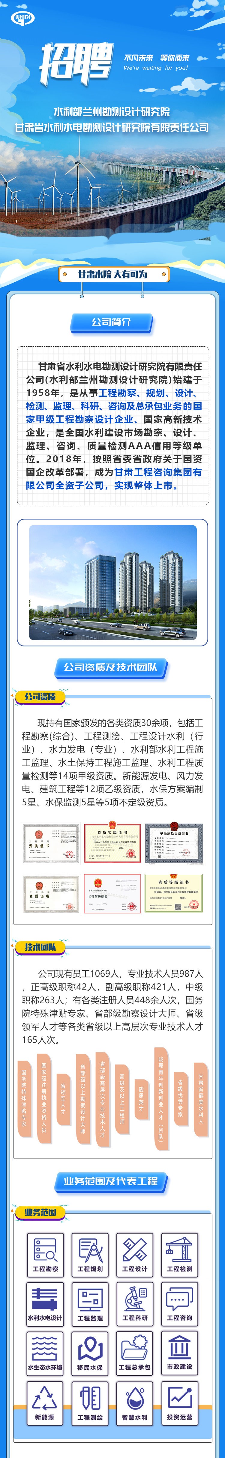 甘肃省水利水电勘测设计研究院有限责任公司招聘公告
