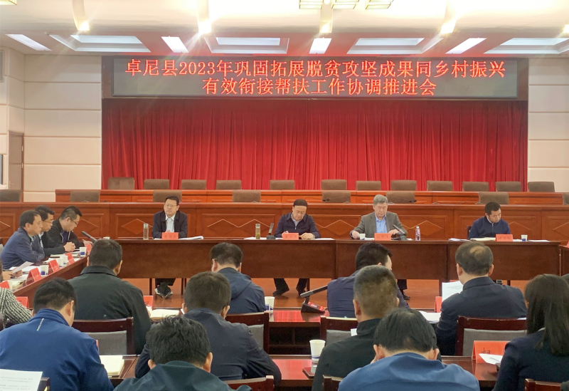 为深入学习贯彻习近平总书记关于“三农”工作暨巩固拓展脱贫攻坚成果同乡村振兴重要论述,全面落实中央、省委省政府帮扶工作部署要求和全省“结对帮扶.爱心甘肃”工程建设会议精神,5月24日,卓尼县召开2023年巩固拓展脱贫攻坚成果同乡村振兴有效衔接帮扶工作协调推进会议。十二届甘肃省政协党组成员袁占亭出席会议并讲话。集团公司党委委员、副总经理苟海龙参加会议。
