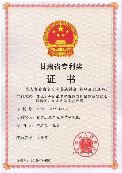 2015甘肃省专利奖三等奖